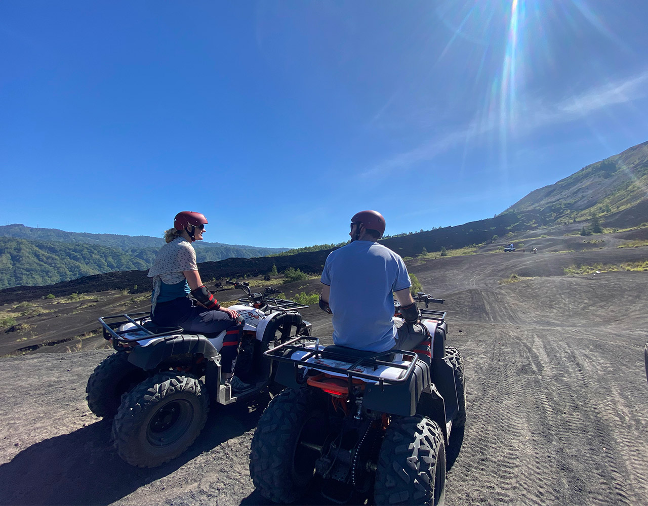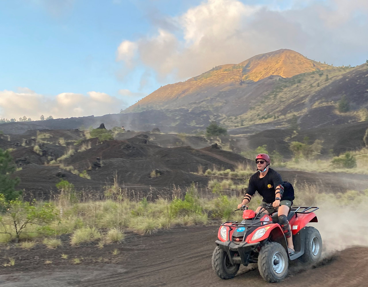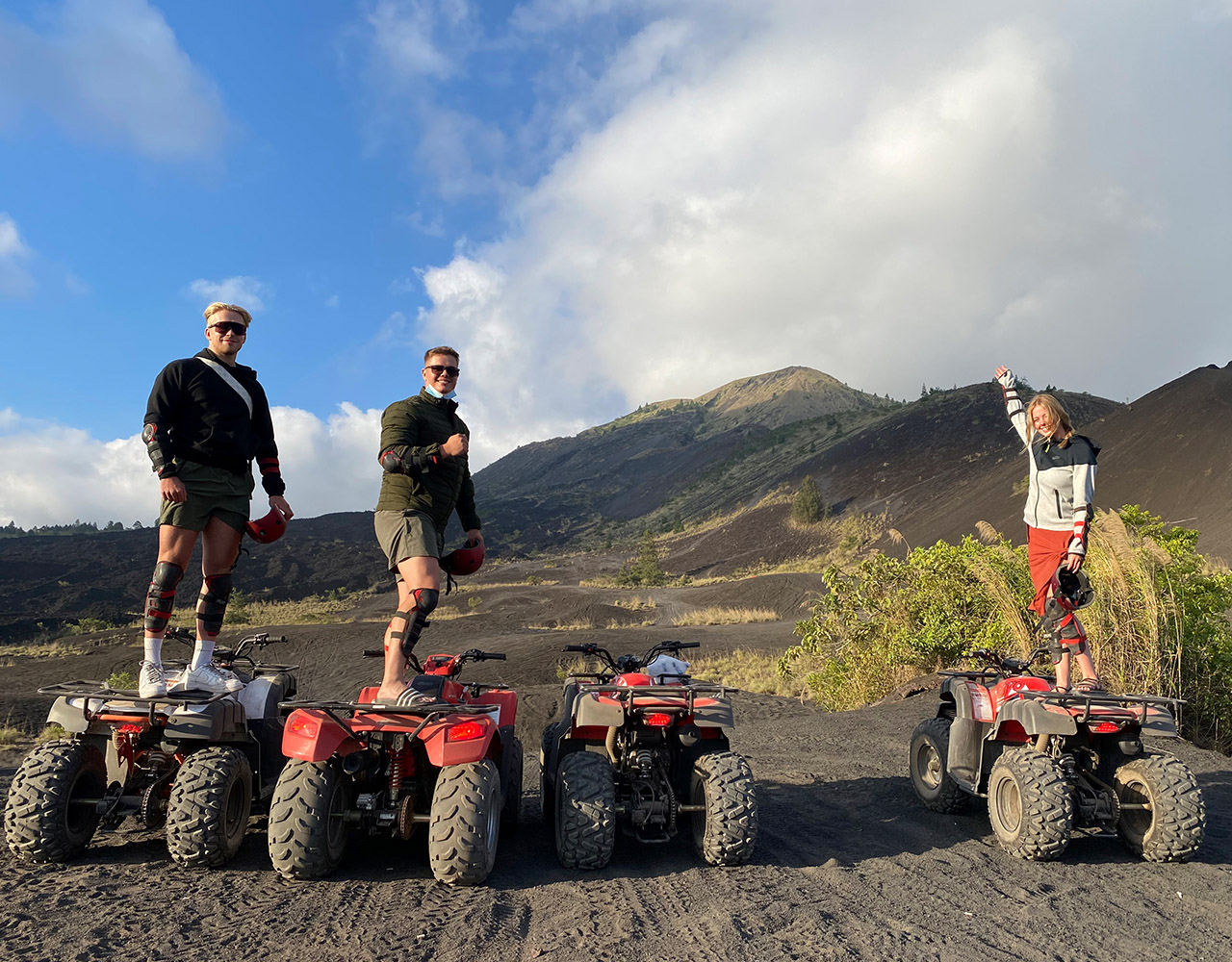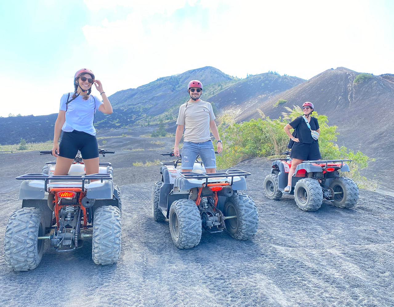 BATUR ATV RIDE Exclusive Mount Batur ATV Black Lava and Black Sand Adventure, we offer something different for you by offering outdoor activities and adventure tours to enjoy a truly exclusive Bali Adventure. Bali has many activities and one of these adventures is the perfect place to do outdoor activities such as ATV Black lava on the Batur volcano, and also be welcomed by a local guide for an informative safety briefing and equipped with protective equipment. Your semi-automatic quadbike is easy to use even for less experienced drivers. About an hour more quad bike adventuring, you will find out the true meaning of a truly different and amazing experience in Bali, especially Mount Batur Black Lava ATV and Black Sands Adventure. We offer atv adventure activities on the mountain batur with the longest and best tracks in kintamani Duration of the ride atv : 1.5 hours This adventure combines fun and visiting tours on Mount batur using atv The track to be passed is 1. Black Lava 2. Black Sand A brief description of the route to be followed 1. This journey will also pass through black lava which has frozen into black rock or what is called black lava 2. This trip will explore the sea of black sand created by the eruption of Mount Batur You will also see firsthand the natural beauty of Mount Batur by using an ATV make your holiday a fun one by taking part in the ATV Quad Bike on Mount Batur
